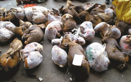 7個熊頭,其中3個已經燙掉毛皮;大小熊掌共計11只;3個鱷魚掌;一堆鷹類尸體……地上的珍稀動物死體幾乎壘成一座小山,而這只是本案中起獲的動物死體的一部分。