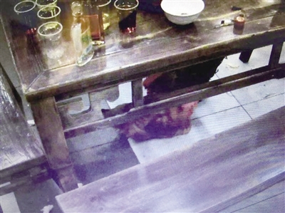 進店后,王先生來到廚房,稱了一只5.7斤的雞。按照王先生的要求,雞稱重后被送到后面現(xiàn)宰??吹絾T工將雞丟進了一個大桶內(nèi)開始磨刀,王先生便放心地回到餐桌上與朋友繼續(xù)聊天。