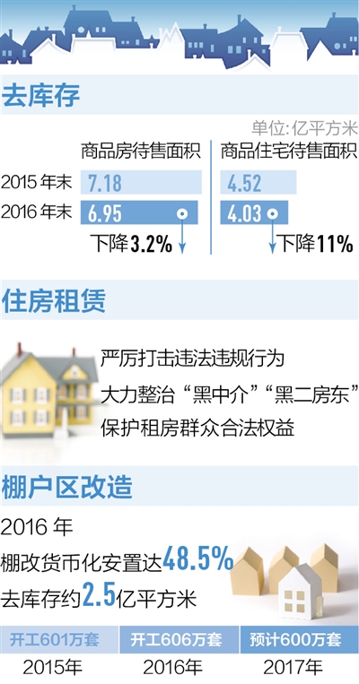 棚戶區(qū)改造是重大的民生工程。2015年、2016年,全國棚改分別開工了601萬套、606萬套,今年的計劃目標是600萬套。陳政高介紹,今年中央棚改補助資金已經(jīng)有了安排,比去年有所提高,“今年還要進一步推進棚改貨幣化安置,特別是在三四線城市和縣城,要大幅度提高比例,加快棚改進度、減少重復(fù)建設(shè)?!?/p>
