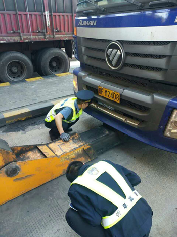 2017年5月24日上午8時許,民警在巡邏至石咀省界收費站時,發(fā)現(xiàn)有一輛“半掛車”壞在收費通道里,路政的清障車正準備將其拖出收費站。民警上前詢問司機是什么原因壞在收費通道里的,司機吞吞吐吐回答是因為“跳磅”造成的。車被拖出收費站后,司機聯(lián)系的修理工也趕到了現(xiàn)場,民警詢問修車需要多長時間、多少費用,修理工回答說需要兩個小時左右,費用估計是兩千元左右。民警耐心的和司機算了一筆賬,因為省幾十元的過路費,又耽誤了時間又浪費了金錢,這樣劃的來嗎?司機慚愧的說,以后再也不會干這樣的蠢事了。