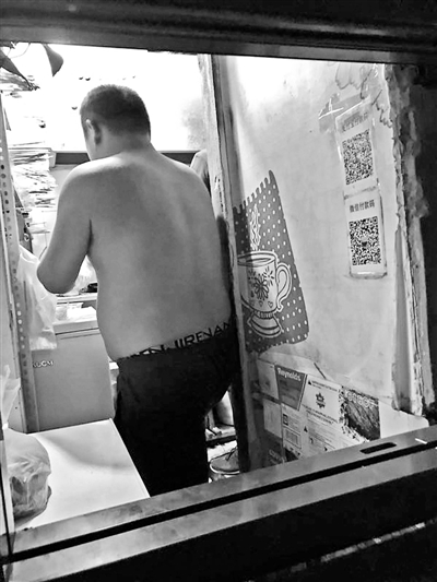 6月16日晚8時(shí)許,北青報(bào)記者再次來到“望京小腰(××店)”,看到窗口外圍聚了數(shù)名外賣平臺的送餐員,等待取餐。燒烤店內(nèi),兩名青年男子,一人赤膊,手拿多份訂單配置菜品、刷油、撒調(diào)料,另一人背身在燒烤架上烤制菜品。食物烤好后,赤膊男子用錫紙包裹好,外面套上紙袋和塑料袋,遞給送餐員。北青報(bào)記者詢問老板可否堂食,老板答復(fù)稱“可以”,但是要借用麻辣燙店內(nèi)桌椅。