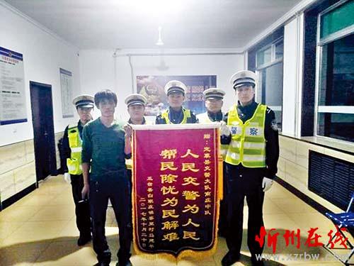 在今年9月9日下午4時許,馬某駕駛大貨車由于操作不當(dāng),撞開防護(hù)墩沖入深溝,被困車中,生命垂危。定襄交警大隊(duì)南莊中隊(duì)巡邏民警發(fā)現(xiàn)情況后,迅速組織警力展開搶救,把傷者從溝底救起,及時聯(lián)系救護(hù)車送往醫(yī)院。由于救助及時,馬某脫離了生命危險,經(jīng)過40多天的治療痊愈出院。為表謝意,他特意制作了這面錦旗。(張志遠(yuǎn))