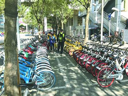 半年前這里不是這樣的?!案骷夜蚕韱诬嚻髽I(yè)過度投放的共享單車,把人行道堵得水泄不通。很多市民用完車就在路邊隨處放,我們只能一輛一輛搬走?!标愔谢貞?,那時,為了保障正常的交通秩序,交警部門只得增派警力駐守管理。盡管牽扯了民警大量精力,但由于共享單車體量龐大,管理效果并不理想。