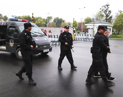 3月26日上午10時30分許,一輛警車駛?cè)胂删涌h公安局院內(nèi)。車門打開,四名荷槍實(shí)彈的警察,押著一名中等身材的光頭男子,向?qū)徲嵤易呷ァ?/p>
