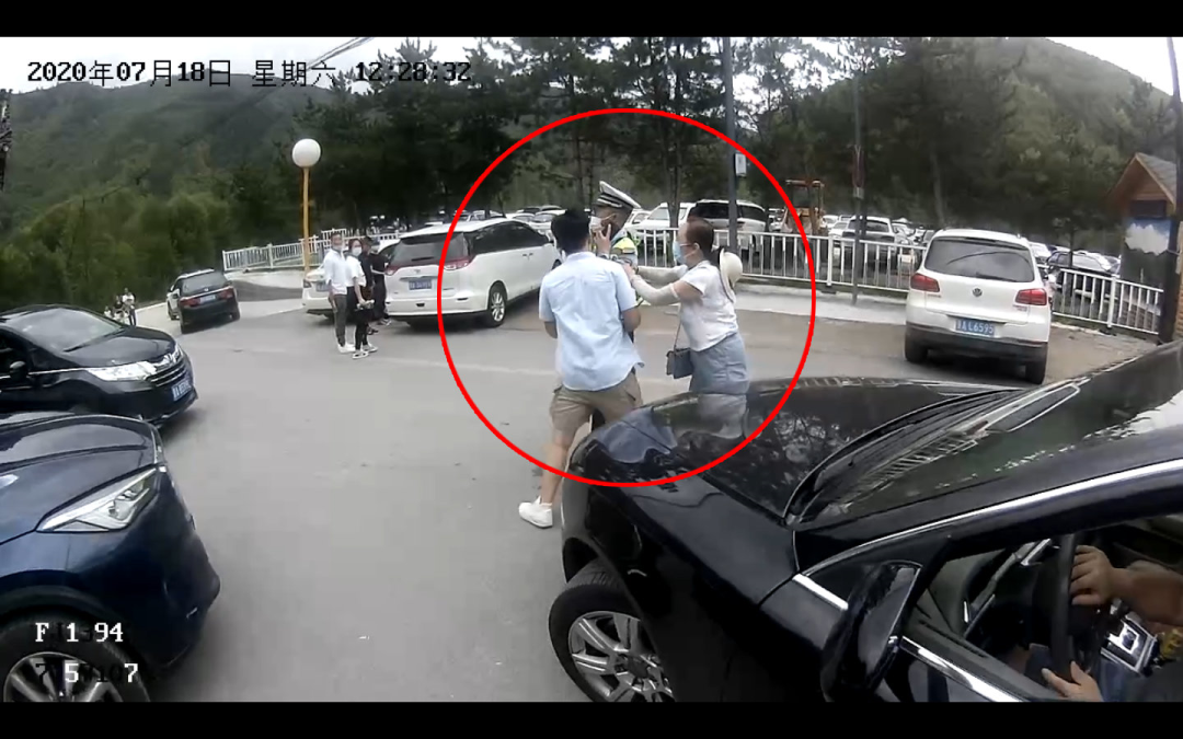 在對(duì)一輛車牌號(hào)為津N***22的黑色奧迪車輛粘貼《違法停車告知單》后,正準(zhǔn)備對(duì)該車進(jìn)行拍照取證時(shí),車主王*良一家三口趕來,對(duì)執(zhí)勤交警粘貼的《違法停車告知單》及執(zhí)勤交警身份有異議,便開始對(duì)執(zhí)勤交警進(jìn)行推搡、語言攻擊、阻撓交警拍照、惡意碰瓷,導(dǎo)致該路段發(fā)生了交通擁堵。執(zhí)勤交警張*夫害怕事態(tài)升級(jí),便撥打110報(bào)警電話進(jìn)行報(bào)警。同時(shí)向帶隊(duì)民警及指揮中心匯報(bào)情況,請求周邊警力增援。