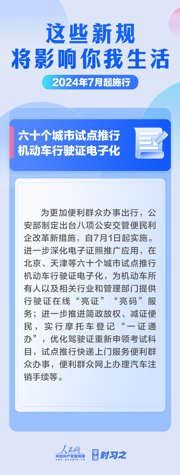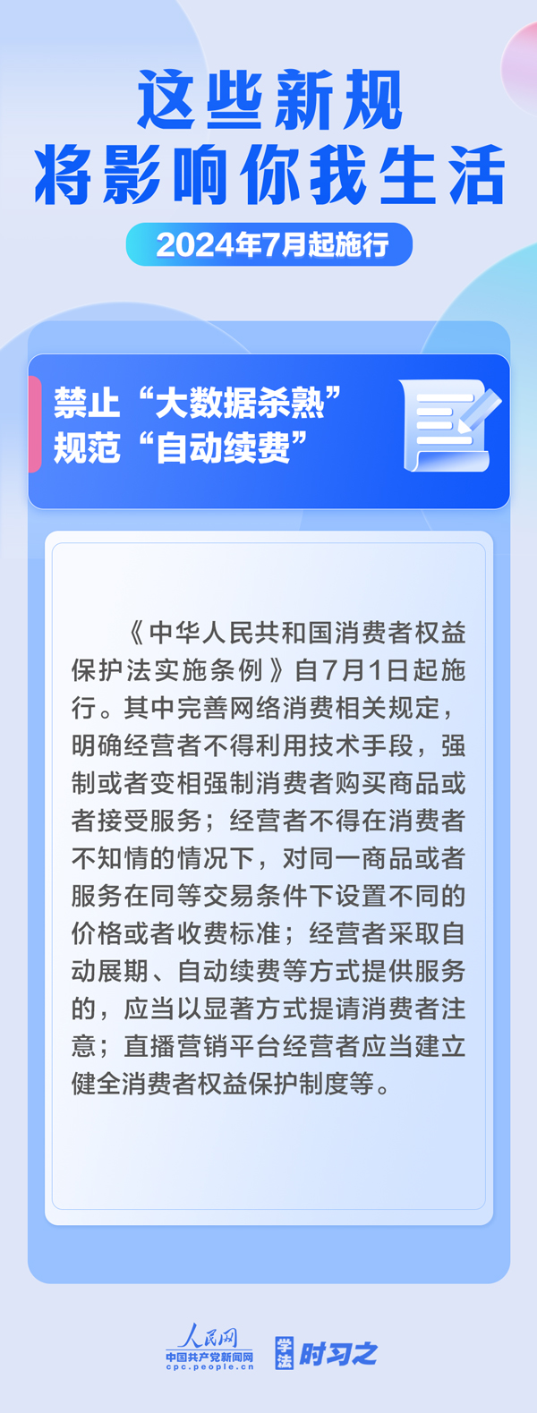 完善注冊資本認繳登記制度;禁止“大數(shù)據(jù)殺熟”規(guī)范“自動續(xù)費”;在六十個城市試點推行機動車行駛證電子化……7月起,這些新規(guī)施行,將影響你我生活。(薄晨棣)