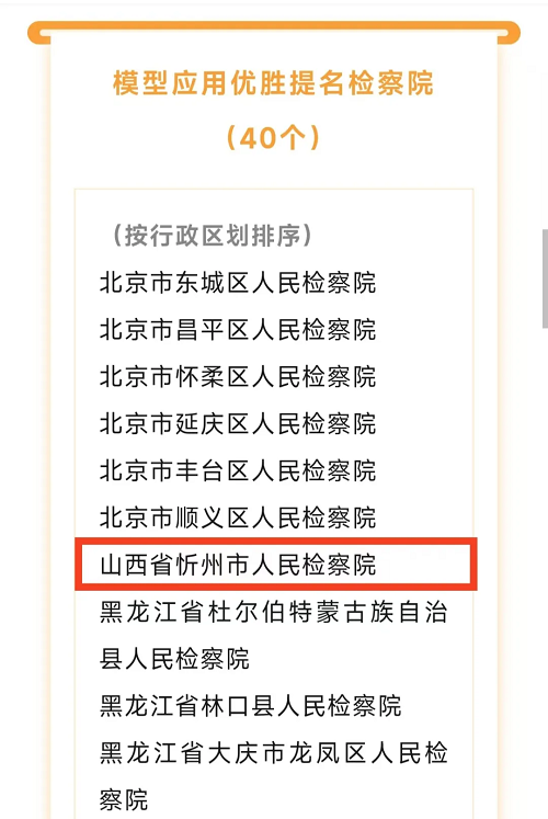 1月8日,最高檢組織的2024年全國檢察機關(guān)大數(shù)據(jù)法律監(jiān)督模型推廣活動評選結(jié)果出爐:忻州市人民檢察院在模型應(yīng)用活動中進入全國前50名,獲評全國“模型應(yīng)用優(yōu)勝提名檢察院”。