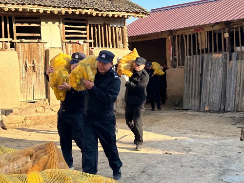 10月25日,康家會(huì)派出所民輔警們?cè)谵r(nóng)田間走訪,了解群眾的秋收進(jìn)展。他們來到最邊緣的一塊玉米地時(shí),發(fā)現(xiàn)一位老人在獨(dú)自掰玉米?!爸招》株?duì)”立即來到地里幫其收玉米,民警們儼然成了“莊稼漢”,大家分工合作,配合默契?!巴甓际俏乙粋€(gè)人忙活,十幾天才能收完,今年多虧了你們,要不是你們幫忙,我還真不知道什么時(shí)候才能收得完!”老人臉上洋溢著豐收的喜悅,拉著民警的手,激動(dòng)之情溢于言表。