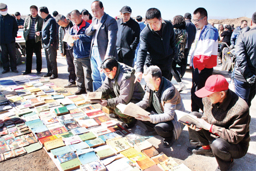 3月14日,原平市文化路集貿(mào)市場(chǎng)圖書飄香,市民們正在挑選自己喜愛(ài)的書籍。該市著力打造文化強(qiáng)市,處處彰顯文化氛圍。(趙春曉 攝)