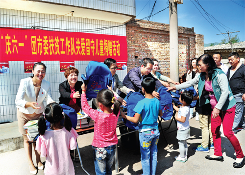 5月28日上午,共青團忻州市委駐代縣扶貧工作隊和志愿者組織代表,深入到所包扶的貧困山區(qū)陽明堡鎮(zhèn)牛村,開展慶“六一”關愛留守兒童捐贈活動,向20名留守兒童捐贈了書包、文具和課外讀物,表達了對留守兒童的關愛。同時動員留守兒童的爺爺、奶奶為忻州“申旅”投票。(石俊文 攝)
