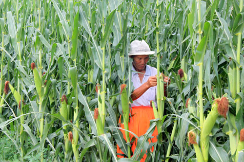 8月8日,原平市東野莊村農(nóng)民正在查看長勢喜人,顆粒飽滿的玉米棒子,入秋,該市田野上大秋作物長勢喜人,到處是一派豐收景象,農(nóng)民們高興地說,今年又是一個好年景好收成。(趙春曉 攝)