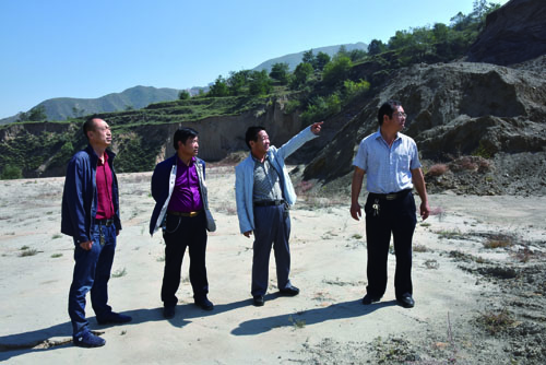 村支部何計所與鎮(zhèn)領導檢查填溝造地工程。