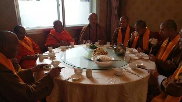 五臺(tái)山望海寺住持釋覺一法師同泰國僧人共進(jìn)午餐