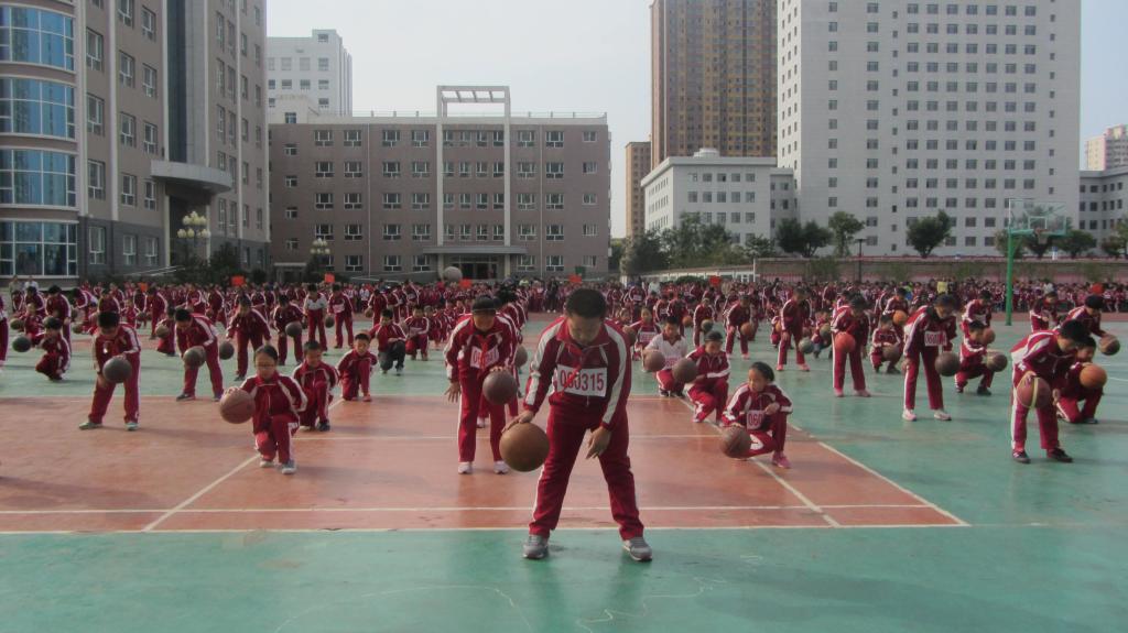 在歡快的旋律中,由100人組成的籃球操隊(duì)伍在吶喊聲中跑進(jìn)會(huì)場(chǎng)。同學(xué)們邁著矯健的步伐,伴著動(dòng)感十足的音樂(lè),開(kāi)始了精彩的籃球操表演。同學(xué)們熟練地玩轉(zhuǎn)籃球,一招一式新穎別致吸人眼球。運(yùn)動(dòng)與音樂(lè)交融,將活力與激情揮灑得淋漓盡致,得到了全體師生的陣陣喝彩和歡呼。充分展現(xiàn)了全校師生意氣風(fēng)發(fā)、積極向上、朝氣蓬勃的精神風(fēng)貌,成為開(kāi)幕式中一道亮麗的風(fēng)景線。