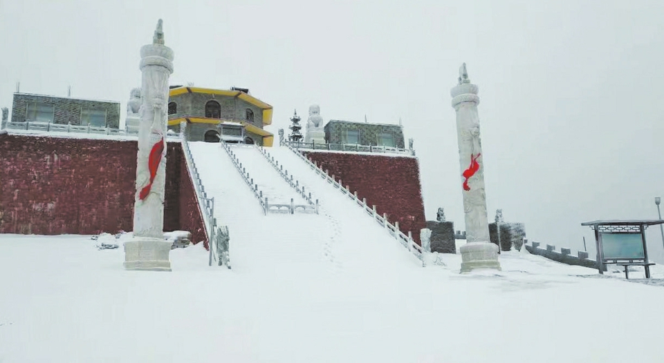 國(guó)慶長(zhǎng)假,前往南方旅游的游人在艷陽(yáng)天里穿著短袖,然而在我省五臺(tái)山山頂,卻飄起了紛紛雪花,為佛國(guó)遮上了神秘面紗。10月6日下午,一些游客穿著棉衣“沐浴”在雪地,感受佛國(guó)奇特的天氣。有人感慨說(shuō):“秋天來(lái)游五臺(tái)山,一不小心就走到了冬天?!?/p> 此次降雪主要分布在五臺(tái)山平均海拔2800米以上的五座臺(tái)頂。因?yàn)榕_(tái)頂與臺(tái)懷腹地海拔相差1000米以上,所以時(shí)有“臺(tái)懷飄雨臺(tái)頂雪”的奇觀出現(xiàn)。東臺(tái)頂亦名望海峰,《清涼山志》載:“蒸云寢壑,爽氣澄秋,東望明霞,若陂若境,即大海也。亦見(jiàn)滄瀛諸州,因以為名?!蓖7迨俏迮_(tái)山觀日出的絕佳位置。7日一大早,東方不見(jiàn)明霞,整個(gè)東臺(tái)頂銀裝素裹,霧靄茫茫,天籟梵音依舊,在圣潔的佛國(guó)仙境踏雪而行,更深切地感受人生一步一個(gè)腳印的意義。(本報(bào)記者 馬卓超 通訊員 覺(jué)一 攝影報(bào)道) (責(zé)任編輯:李冬梅) |