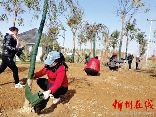 11月28日,為確保滹沱河源頭環(huán)境綜合治理縣城段東延樹木安然過冬,繁峙縣的園林工人們正在為樹木穿保暖衣