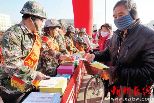12月2日上午,市交通運(yùn)輸局在城區(qū)日月廣場(chǎng)舉行交通法治宣傳主題活動(dòng)。當(dāng)天是第五個(gè)“全國(guó)交通安全日”,活動(dòng)現(xiàn)場(chǎng)設(shè)置了法律咨詢臺(tái),工作人員向過(guò)往市民發(fā)放宣傳資料,解答有關(guān)交通法律法規(guī)的問(wèn)題,受到了市民的一直好評(píng)。(王菲 攝)