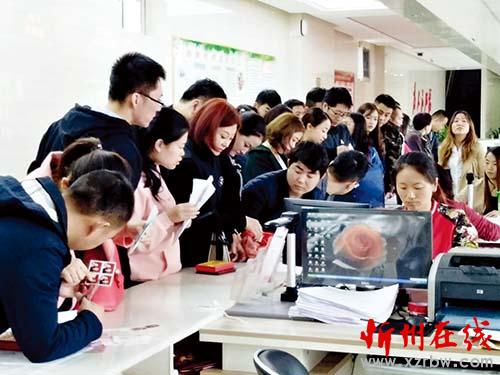 本報(bào)訊10月10日,寓意“十全十美、幸福快樂”,一大早,在城區(qū)慕山南路忻府區(qū)政務(wù)大廳前,就有好幾對(duì)準(zhǔn)新人等候在那里,準(zhǔn)備領(lǐng)取結(jié)婚證。記者在現(xiàn)場(chǎng)看到,還有一對(duì)對(duì)準(zhǔn)新人正陸續(xù)走進(jìn)大廳。