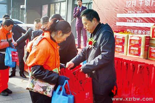 本報(bào)訊12月9日,我市環(huán)衛(wèi)工人領(lǐng)到海爾專賣店贈送的冬季防寒用品。隨著較強(qiáng)冷空氣帶來的降溫,忻州城區(qū)氣溫急轉(zhuǎn)直下。當(dāng)天上午,忻州海爾專賣店為現(xiàn)場50余名環(huán)衛(wèi)工人代表發(fā)放了“ 防寒禮包”,給冬日里工作在一線的“馬路天使”們送來了一份溫暖。同時(shí),還將一個(gè)大蛋糕分送給環(huán)衛(wèi)工人,為他們送上了特別的關(guān)懷。