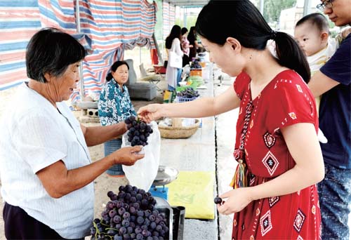 9月9日,河曲縣焦尾城村葡萄交易市場,迎來一撥又一撥選購葡萄的顧客。該村大力發(fā)展無公害綠色葡萄項目,所產(chǎn)葡萄酸甜適度,口感極佳,在廣大消費者心目中樹立了良好的品牌形象。賈金理 攝