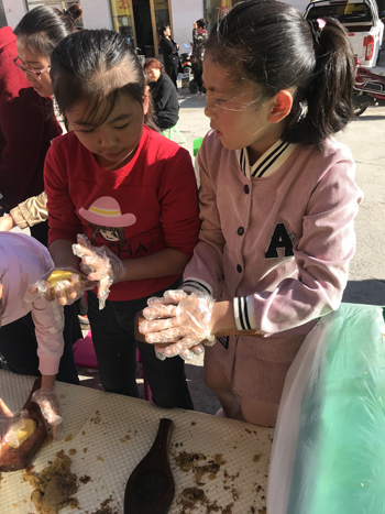 一方水土養(yǎng)一方人,一塊小餅生一地財(cái)。神池縣大人、小孩特別感恩當(dāng)?shù)卣龑?dǎo)農(nóng)民把地產(chǎn)胡油自然資源優(yōu)勢傳化為商品經(jīng)濟(jì)優(yōu)勢,以月餅帶動當(dāng)?shù)剞r(nóng)民脫貧增收發(fā)展經(jīng)濟(jì)的功勞。9月16曰,該縣一家校外語言培訓(xùn)機(jī)構(gòu)在金口玉言口才學(xué)校的校園里別開生面舉辦了“迎中秋食品安全知識宣傳暨傳承神池傳統(tǒng)月餅手工戶外體驗(yàn)活動”。此舉不僅培養(yǎng)了小孩熱愛家鄉(xiāng)的意識和感恩心理,也提高小孩熱愛勞動的動手能力,同時加強(qiáng)孩子們的食品安全知識,受到好評。記者現(xiàn)場看到,家長們從家里帶來了烤箱,學(xué)校準(zhǔn)備好了玫瑰、青紅絲、核桃仁、花生米、葡萄干、芝麻等餡料,孩子們你一言我一語討論著自己動手做月餅的事,在觀看面點(diǎn)阿姨細(xì)致地講解與示范后,每個小朋友都躍躍欲試,體驗(yàn)親手做家鄉(xiāng)特產(chǎn)的樂趣。