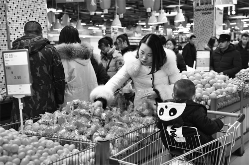 老話說“過了臘八就是年”。進入臘月,河曲全縣各大商場、超市、農貿市場貨源充足,品種豐富,呈現出供需兩旺的場面,節(jié)日市場紅紅火火。圖為1月14日家福樂超市購物場面。菅麗 攝