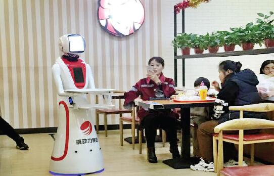 近日,記者在城區(qū)七一路一快餐店看到,店里沒有服務員,只有一位打扮時尚的“機器人女士”和一個會說話的小機器人走來走去,特別顯眼。“機器人女士”給顧客端菜送飯,忙得不亦樂乎,小機器人負責在門口迎客、與小朋友玩樂。飯店引進機器人提供服務這一亮點吸引了許多市民,尤其是小朋友們前來圍觀吃飯。徐國華 攝