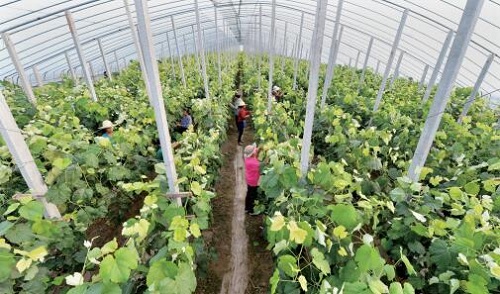 前幾年,定襄的設(shè)施農(nóng)業(yè)種植分散、設(shè)施條件差、收益低。受祿鄉(xiāng)在發(fā)展設(shè)施農(nóng)業(yè)的過(guò)程中總結(jié)出了“支部引領(lǐng),村委支持,黨員帶頭,群眾跟進(jìn),吸納貧困戶”的經(jīng)驗(yàn)并在全縣起到示范作用。建規(guī)模園區(qū)土地流轉(zhuǎn)首當(dāng)其沖,受祿鄉(xiāng)在流轉(zhuǎn)土地的時(shí)候,采取“農(nóng)民報(bào)名,統(tǒng)一規(guī)劃,簽訂合同”的辦法。流轉(zhuǎn)集中的土地,各村負(fù)責(zé)“三通一平”。定襄的設(shè)施農(nóng)業(yè),已經(jīng)從以前的改良式塑料大棚,發(fā)展到現(xiàn)在廣泛推廣的下凹式日光溫室和全鋼架春秋大棚,棚內(nèi)作物也實(shí)現(xiàn)了由普通蔬果到甜瓜、草莓、西蘭花等“新特優(yōu)”產(chǎn)品的轉(zhuǎn)型。