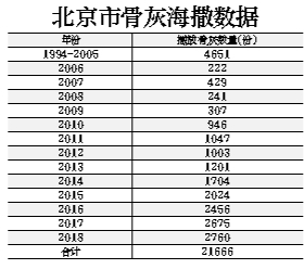 目前,以骨灰海葬、骨灰自然葬為代表的節(jié)地生態(tài)葬式已成為北京市骨灰安葬的主流。本市骨灰海葬活動(dòng)自1994年實(shí)施以來,迄今已順利組織了485次,播撒骨灰21666份,服務(wù)逝者家屬67887人次,僅2018年就組織骨灰撒?;顒?dòng)70批次,播撒骨灰2760份,參加活動(dòng)家屬11160人,在全國(guó)居于領(lǐng)先地位。“十三五”末,骨灰海葬量預(yù)計(jì)將達(dá)到北京市年火化總量的4%。