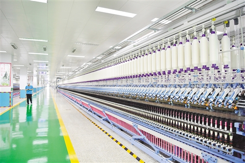 山東省鄒平縣魏橋紡織股份有限公司智能化車間里,12.5萬(wàn)紗錠智能化生產(chǎn)線運(yùn)轉(zhuǎn)有序,工作人員只需要觀察手中的智能設(shè)備就可以了解所有機(jī)器的運(yùn)行狀況,原本需要10人完成的工作現(xiàn)在只需要1人。本報(bào)記者 高興貴攝