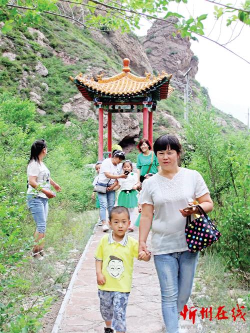 6月1日,定襄縣七巖山附近南王村幼兒園的孩子們?cè)诒硌萃旯?jié)目后,與父母在猿頭山景點(diǎn)涼亭前游覽、拍照。這些孩子的父母大多外出打工,平時(shí)與孩子聚少離多,和父母一起親近大自然成了孩子們今年“六一”最大的快樂(lè)。