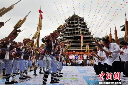 資料圖:湘黔桂千名蘆笙手賽蘆笙慶重陽節(jié)。圖為蘆笙比賽現(xiàn)場。龔普康 攝