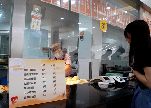 上海交通大學(xué)的食堂的各類面條實行大份、小份供餐。9月1日起,上海交通大學(xué)的學(xué)生開始分批、錯時到校開學(xué)。開學(xué)后,學(xué)校食堂加強節(jié)約糧食、光盤行動的宣傳,并采取多項措施引導(dǎo)師生員工文明用餐,杜絕浪費。