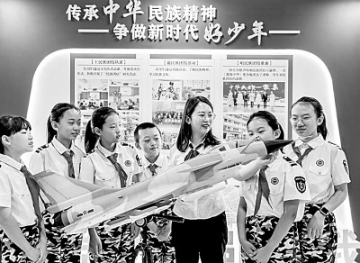 9月14日,內(nèi)蒙古自治區(qū)呼和浩特市玉泉區(qū)五塔寺東街小學(xué)學(xué)員們學(xué)習(xí)國(guó)防知識(shí),增強(qiáng)國(guó)防觀念。丁根厚攝/光明圖片