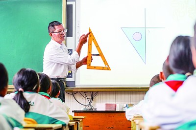 堅(jiān)守三尺講臺三十九載的山村教師楊紅軍在為學(xué)生授課。新華社發(fā)