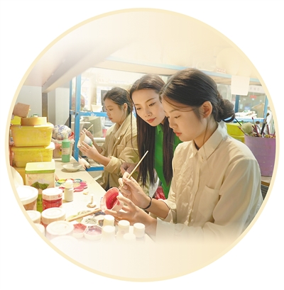 江西吉安職業(yè)技術(shù)學(xué)院老師(中)為吉州窯非遺創(chuàng)業(yè)班學(xué)員授課。范小勇 劉 晨攝影報道