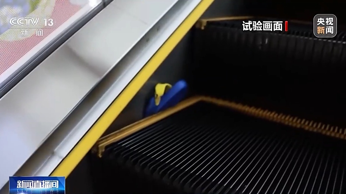 家長帶娃去商場,五顏六色的洞洞鞋要特別小心。消防模擬試驗顯示,把一只“洞洞鞋”貼在扶梯的側(cè)面,鞋子與扶梯側(cè)邊產(chǎn)生很大摩擦力,鞋子很快被扶梯側(cè)邊的縫隙吸了進去,并且迅速被擠壓變形。據(jù)介紹,由于洞洞鞋材質(zhì)較軟易變形,且鞋頭寬大,更容易靠近扶梯邊緣,且與扶梯之間的摩擦力較大,更容易卷進扶梯縫隙。此外,洞洞鞋和扶梯的梳齒板有摩擦,鞋子也容易在上下扶梯時被卡,造成人員絆倒。