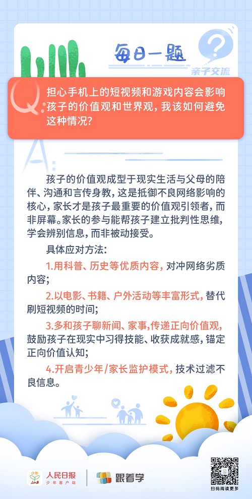 每日一題丨家長(zhǎng)該如何避免手機(jī)上的內(nèi)容影響孩子的價(jià)值觀和世界觀?