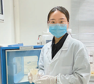 廈門大學(xué)材料學(xué)院材料工程專業(yè)畢業(yè)生吳潔茹在做實(shí)驗(yàn)。葉偉彬攝