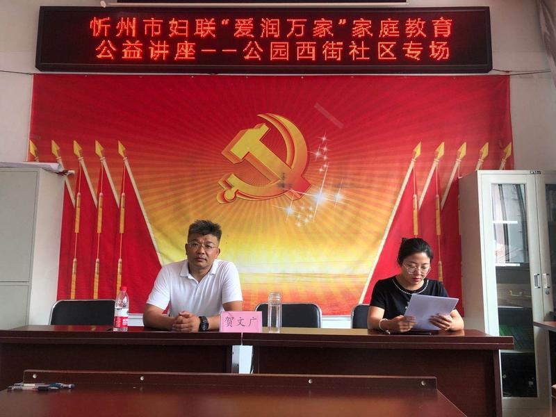 7月22日下午,忻州市長征小學(xué)組織三年級30余名學(xué)生家長在世紀(jì)花苑物業(yè)三樓參加了由忻州市婦聯(lián)組織的“愛潤萬家”家庭教育公益講座,講座由心理學(xué)研究中心賀文廣會(huì)長主持。
