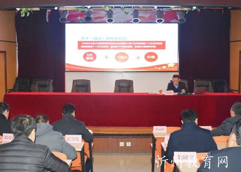 11月28日,原平市教科系統(tǒng)召開(kāi)黨的十九屆五中全會(huì)精神宣講報(bào)告會(huì),市委宣講團(tuán)成員、市教科局黨組書(shū)記、局長(zhǎng)申國(guó)華作宣講報(bào)告。市教科局主任科員、機(jī)關(guān)支部書(shū)記賈毅主持報(bào)告會(huì)。教科系統(tǒng)各學(xué)校校長(zhǎng)、書(shū)記,局機(jī)關(guān)各科室負(fù)責(zé)人參加報(bào)告會(huì)。