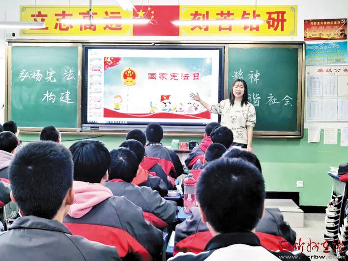 本報(bào)訊 2020年12月4日,是我國第七個(gè)國家憲法日,為大力弘揚(yáng)憲法精神,向?qū)W生普及憲法和法律知識,引導(dǎo)青少年學(xué)生自覺成為憲法的忠實(shí)崇尚者、自覺遵守者、堅(jiān)定捍衛(wèi)者,營造良好的校園法治教育環(huán)境和氛圍,北方中學(xué)開展了以“弘揚(yáng)憲法精神,護(hù)航少年成長”為主題的“12·4憲法日”系列活動(dòng)。