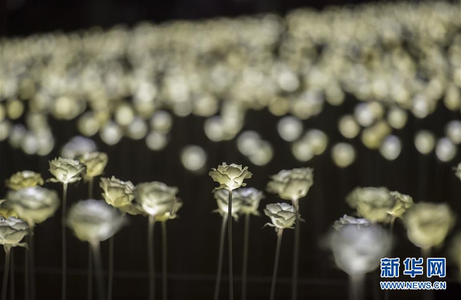 這是在中環(huán)海濱拍攝的白玫瑰花燈(2月13日攝)。 2月13日,來自韓國(guó)首爾的LED Rose Garden大型公共展覽亮相香港。25000朵LED白玫瑰花燈在中環(huán)海濱展出,在情人節(jié)即將到來之際點(diǎn)亮維港,營(yíng)造出浪漫甜蜜的氛圍。新華社記者 呂小煒 攝