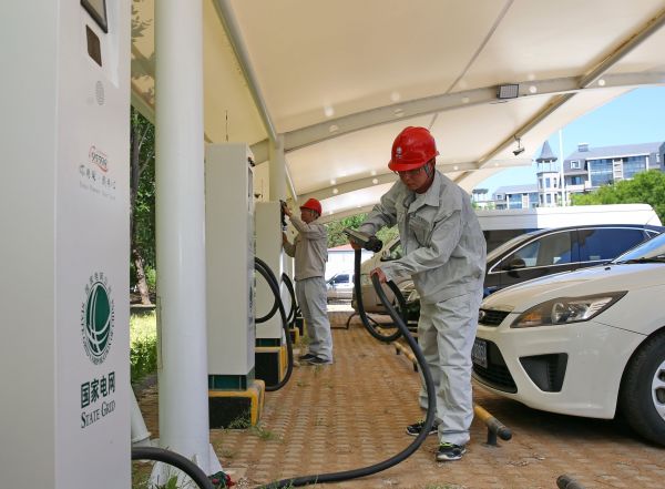 資料圖片:工人在充電站工作。 新華社記者楊世堯攝 (責(zé)任編輯:盧相?。?/p> |
