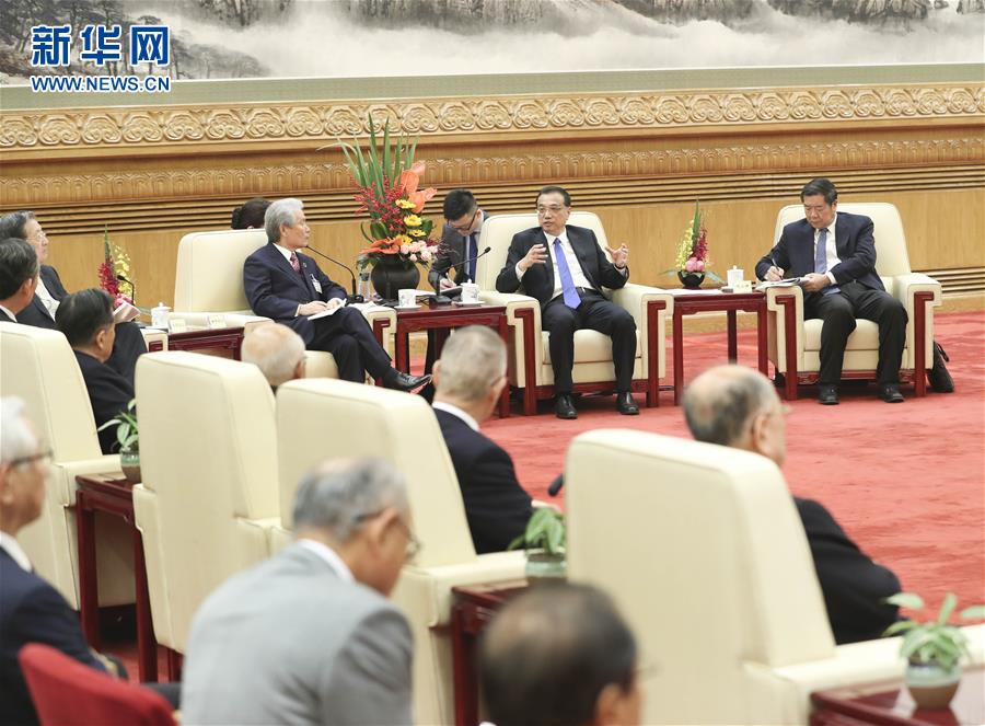 11月21日,國務(wù)院總理李克強(qiáng)在北京人民大會堂會見日本經(jīng)濟(jì)團(tuán)體聯(lián)合會會長榊原定征、日中經(jīng)濟(jì)協(xié)會會長宗岡正二、日本商工會議所會長三村明夫率領(lǐng)的日本經(jīng)濟(jì)界代表訪華團(tuán)并同他們座談。新華社記者 龐興雷 攝