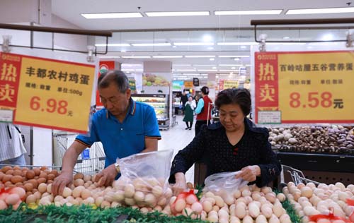 4月11日,市民在重慶市沙坪壩區(qū)一家超市內(nèi)選購(gòu)雞蛋。新華社記者王全超攝