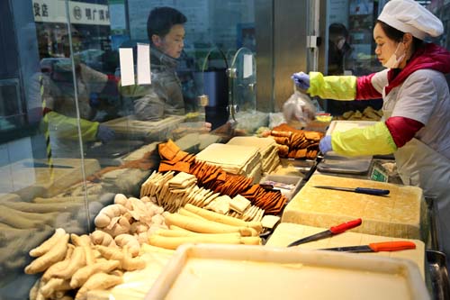 4月11日,市民在江蘇連云港市連云區(qū)一市場(chǎng)選購(gòu)豆制品。新華社發(fā)(王春攝)