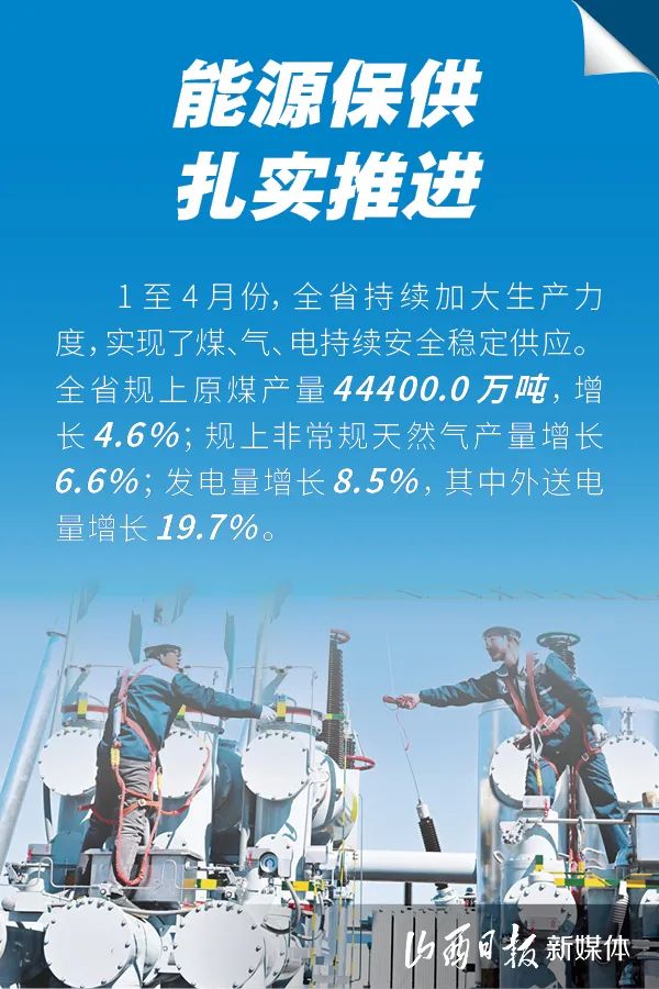 5月19日,山西省統(tǒng)計(jì)局公布1至4月份,全省經(jīng)濟(jì)運(yùn)行情況:1至4月份,全省工業(yè)生產(chǎn)平穩(wěn)增長,消費(fèi)市場加速回暖,就業(yè)物價(jià)總體穩(wěn)定,經(jīng)濟(jì)運(yùn)行延續(xù)恢復(fù)向好態(tài)勢。一組海報(bào),了解1至4月山西經(jīng)濟(jì)數(shù)據(jù)。