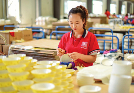 “與潮州等國內(nèi)日用瓷生產(chǎn)基地相比,朔州從制泥到產(chǎn)品設(shè)計再到成品外銷,幾乎都是各家日用瓷企業(yè)獨立完成。各家企業(yè)都有自己的‘泥、釉、?!谱鳝h(huán)節(jié),制泥、成型、制模等產(chǎn)業(yè)鏈上游配套企業(yè)還是比較缺失的。”說起朔州日用瓷產(chǎn)業(yè)鏈存在的問題,梅斌直言,“此外,目前朔州專業(yè)從事日用瓷研發(fā)設(shè)計和銷售的企業(yè)也比較少,缺乏權(quán)威產(chǎn)品檢測機構(gòu)的情況也需改善?!?/p>