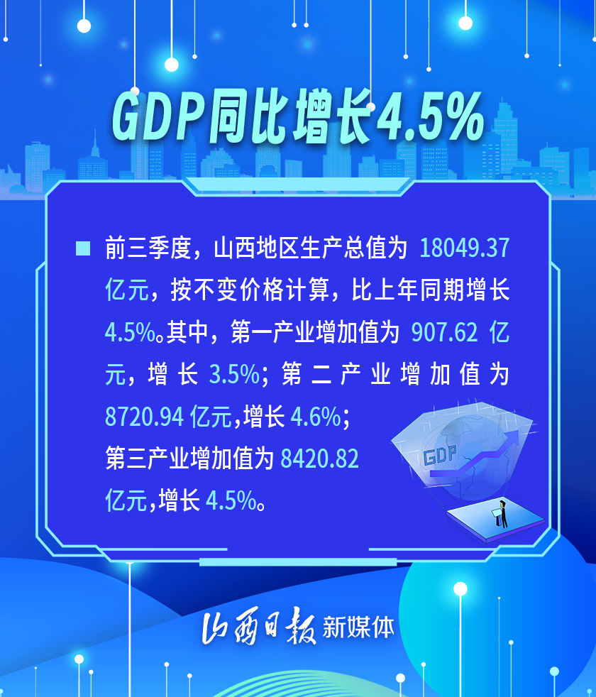 10月23日,山西省統(tǒng)計局和國家統(tǒng)計局山西調(diào)查總隊聯(lián)合發(fā)布前三季度山西經(jīng)濟運行情況。前三季度,山西經(jīng)濟繼續(xù)保持平穩(wěn)復(fù)蘇、穩(wěn)中向好的發(fā)展態(tài)勢,三次產(chǎn)業(yè)穩(wěn)步增長,有效需求逐步恢復(fù),就業(yè)物價總體穩(wěn)定。詳細(xì)數(shù)據(jù),一組海報了解。